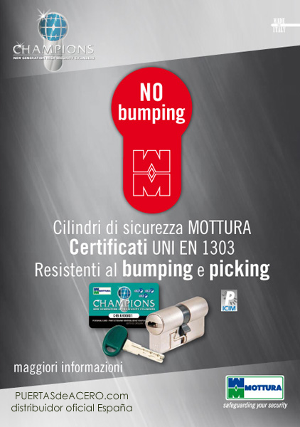 El cilindro champions es el único del mercado que se bloquea en caso de tentativa bumping reteniendo la llave ilegal. Funciona de manera independiente a la cerradura.